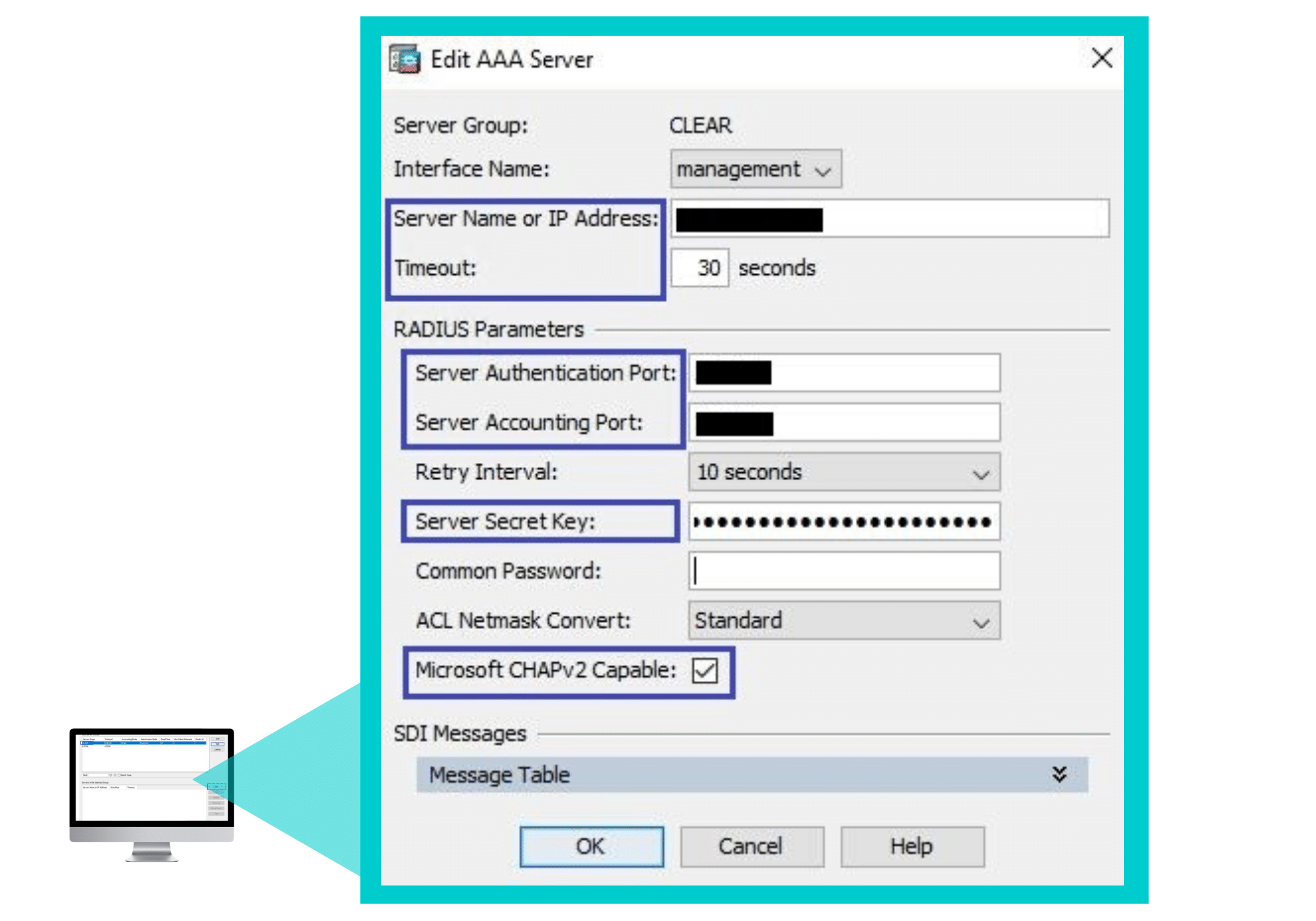 - In Server Accounting port, enter the Accounting port.