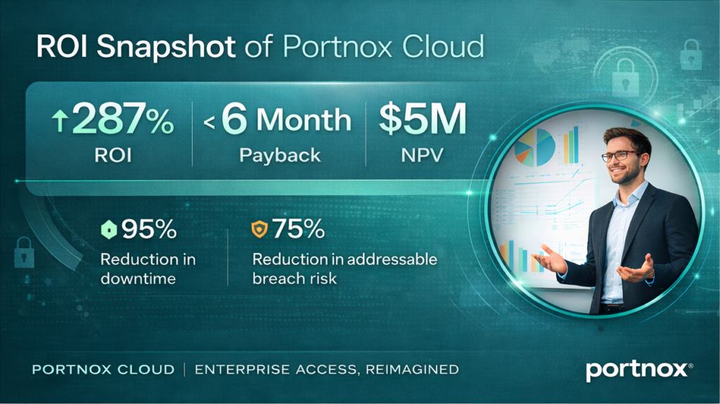 Portnox commissioned Forrester Consulting to conduct an independent TEI study of Portnox Cloud across six enterprise deployments. The analysis quantified the financial and operational impact of moving from passwords to a continuous, universal zero trust model.